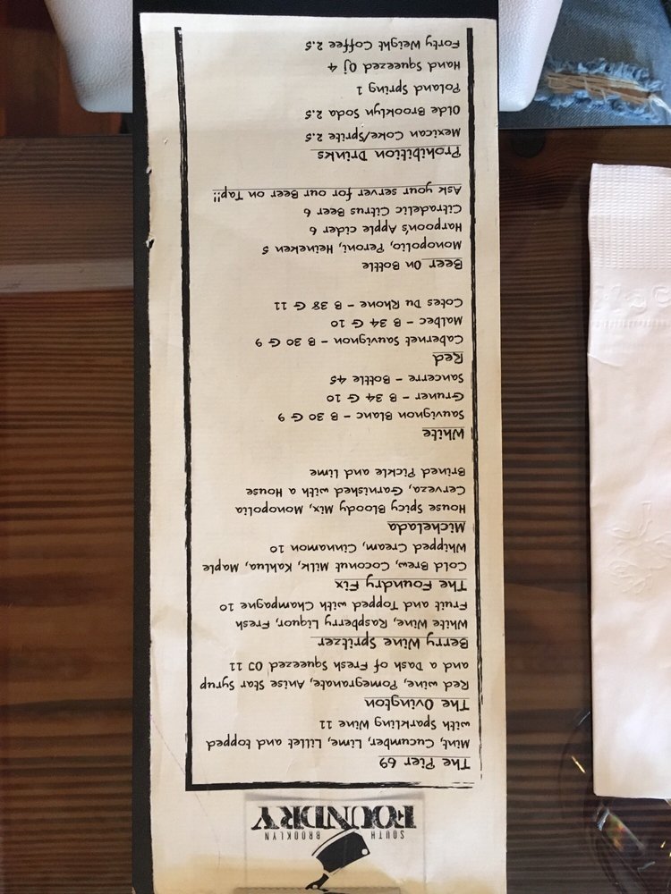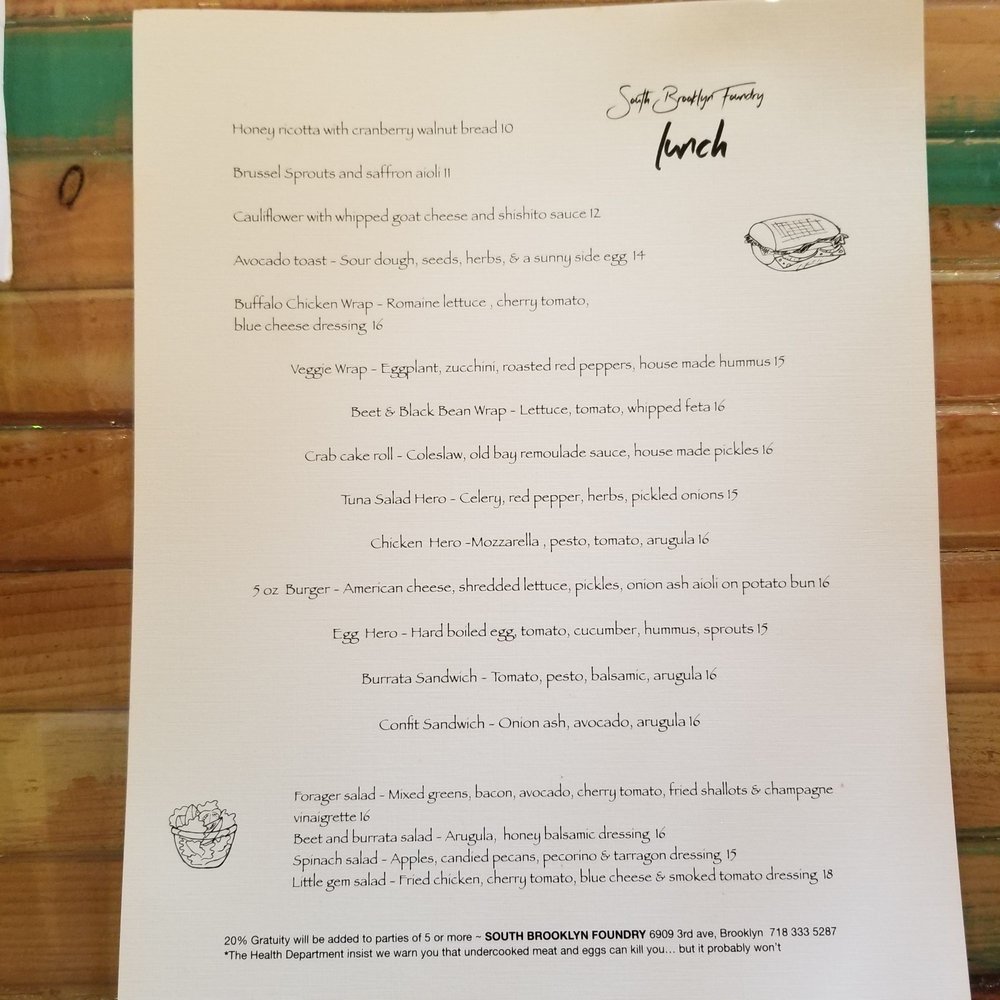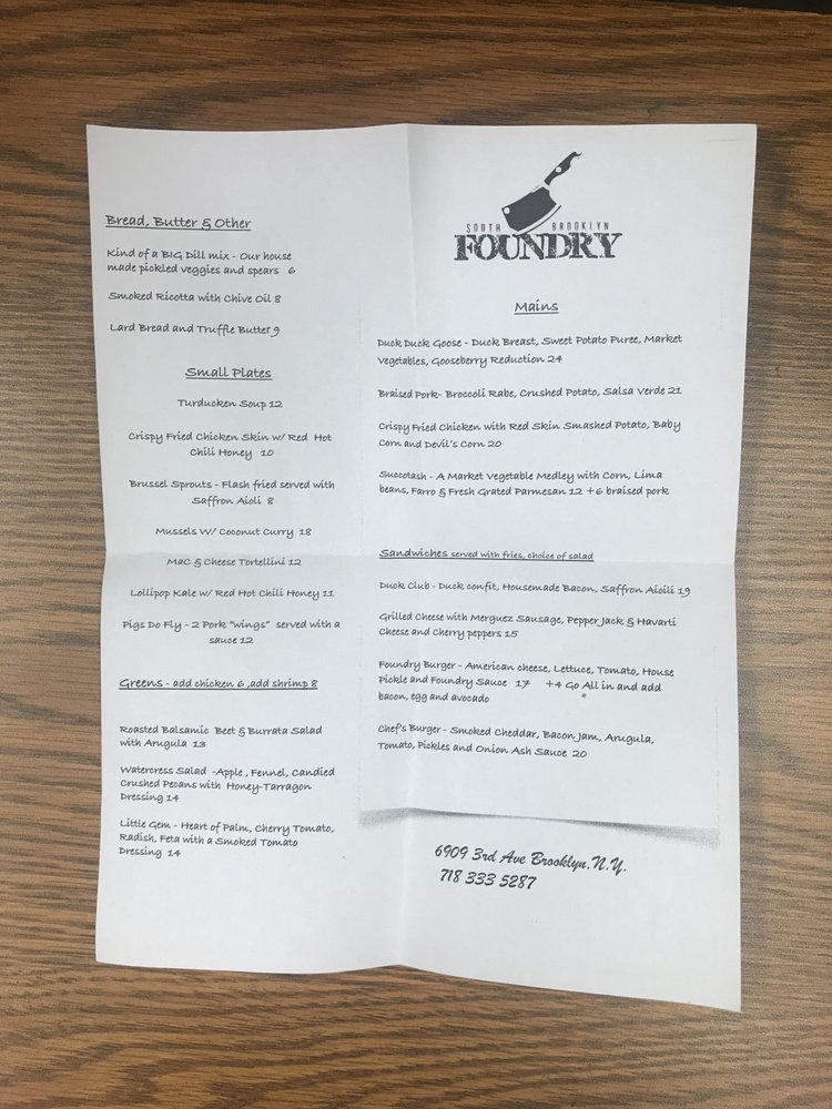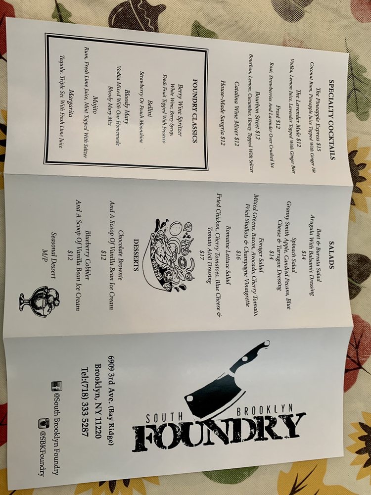 South Brooklyn Foundry Menu