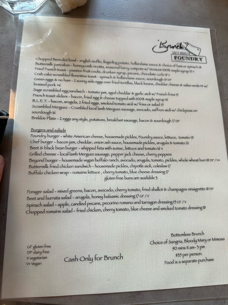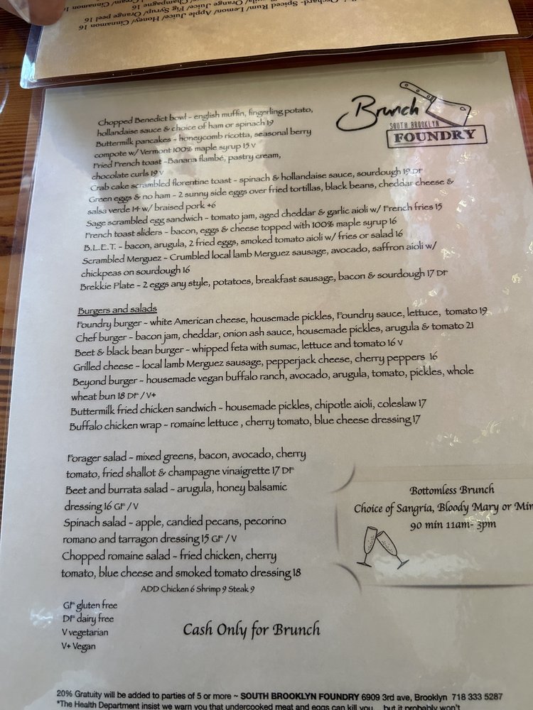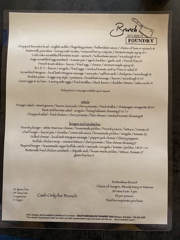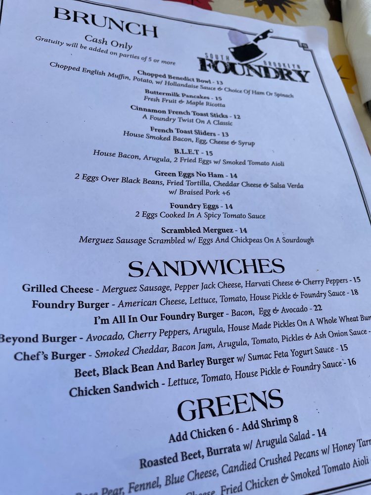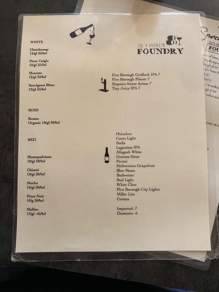 South Brooklyn Foundry Menu